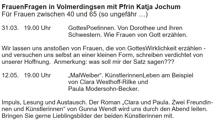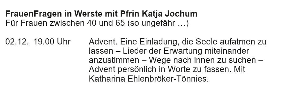FrauenFragen in Werste mit Pfrin Katja Jochum