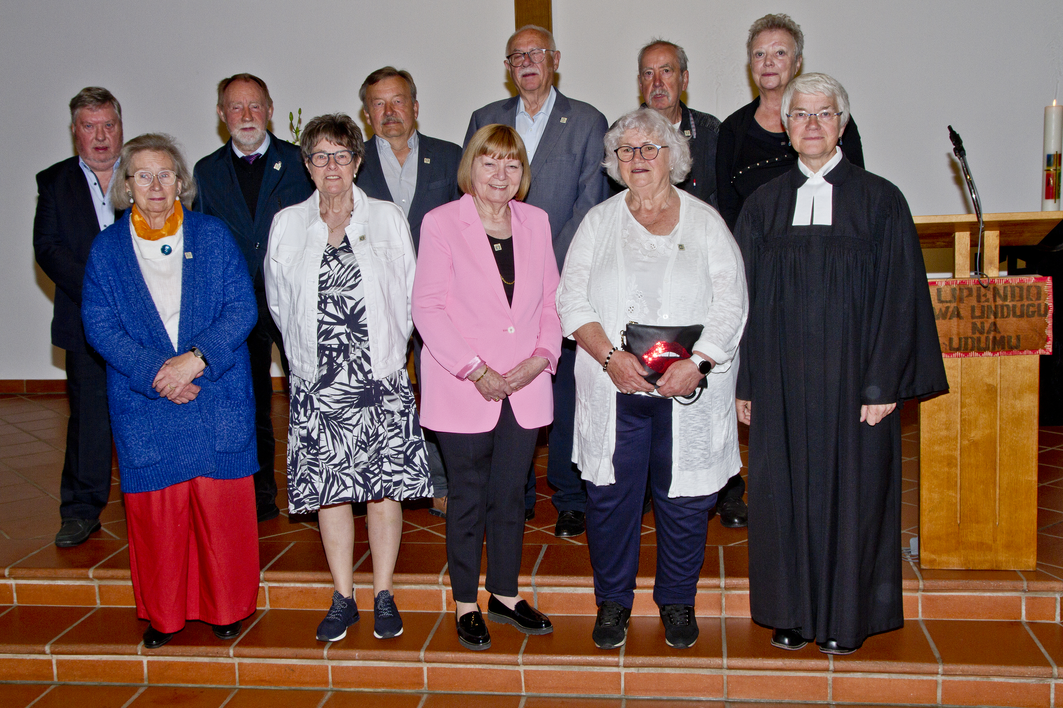 hinten v.li.: Klaus-Dieter Velske; Diethard Reimann; Dieter Wilkening; Klaus Kelle; Pfarrerin Kerstin Neddermeyer