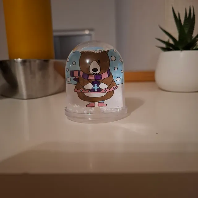 Dann ging es aber auch schon zum Hauptprogramm, nämlich zum Basteln. Dieses Mal, passend zur Winterzeit: Schneekugeln mit Motiven nach Wahl. Während die Kinder malten, wurden die Kugeln mit Wasser befüllt.