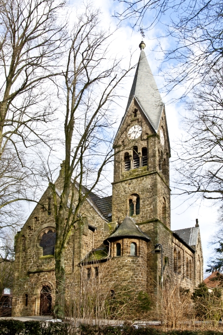 Die Minden-Ravensberger Erweckungsbewegung des 19. Jahrhunderts setzte ein großes diakonisches Engagement in unserer Region frei. 1887 gründete der Volmerdingsener Pfarrer Hermann Krekeler zusammen mit anderen Menschen aus den Kirchenkreisen Minden und Vlotho den Wittekindshof, die heutige “Diakonische Stiftung“ als Einrichtung für Menschen mit Behinderungen, und setzte damit ein Zeichen christlicher Verantwortung für die Schwachen und Hilflosen. 1899 wurde durch Beschluss der königlich-preußischen Kirchenbehörde die Anstaltskirchengemeinde gegründet, die schon 1904 eine Kirche, erbaut im neuromanischen Stil, einweihen konnte. Die Kirche ist der geistliche Mittelpunkt des Wittekindshofes, in deren Altarraum ein großes Holzkreuz hängt mit dem gekreuzigten Christus. Er segnet mit verrenkten Armen und Händen die Gemeinde der Mühseligen und Beladenen.